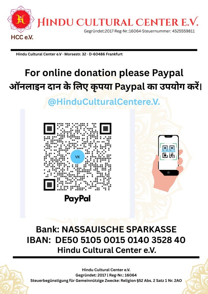 • Account Holder: Hindu Cultural Center e.V.