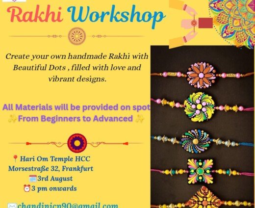 Join us on 3rd August for a unique Rakhi-Making Workshop, where you can craft a beautiful, personalized Rakhi to take home — perfect for those of us living far from home, where finding a Rakhi isn’t always easy.
